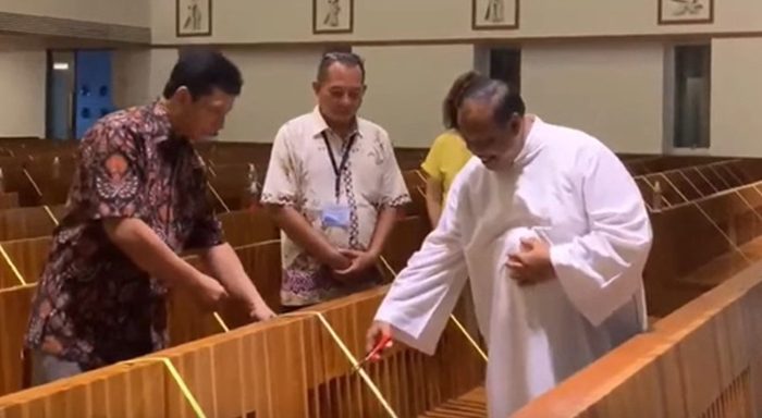 Potong Pembatas Kursi Umat secara Simbolis, Romo Aloysius Susilo Wijoyo, Pr membuka Gereja St Gabriel memasuki Now Normal