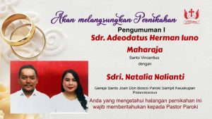 - Novena Roh Kudus akan dimulai pada hari Jumat 27 Mei sampai dengan Sabtu 4 Juni, pkl 19.00. Khusus hari Sabtu pkl 17.00 dan hari Minggu pkl 10.00. Umat dapat mengisi intensi melalui google form yang tersedia sampai tanggal 26 Mei pkl. 14.00
