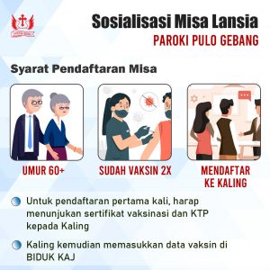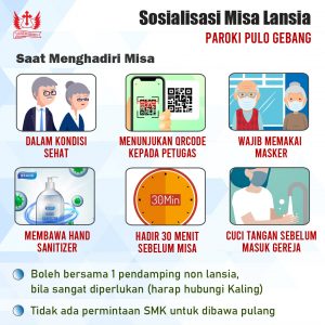 Sementara untuk para lansia yang diizinkan ikut misa adalah berusia 60 tahun keatas, dalam keadaan sehat dan telah mendapat vaksinasi Covid-19 dosis 1 dan 2. Lansia harus mendapatkan izin dari keluarga, dengan kesadaran pribadi mengikuti misa offline, dan mendaftar melalui ketua lingkungan di website misa.parokipulogebang.org.