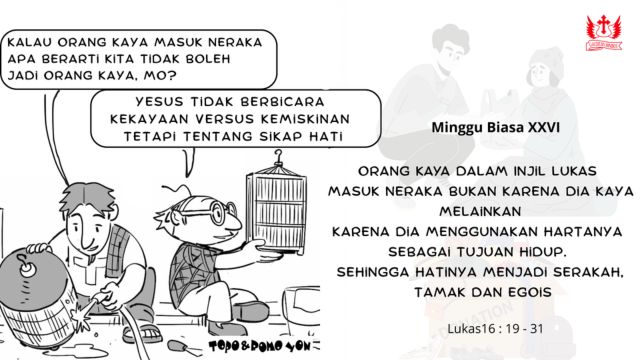 Sabda hari in menyampaikan dua (2) pokok permenungan, yakni tentang Kualitas dalam beriman dan menghayati man dalam kerendahan hati. Tentang kualitas hidup Tuhan bersabda bahwa iman sebesar biji sesawi dapat memindahkan pohon ara dan tertanam dalam laut. Maha daya iman kita tidak terletak pada seberapa besar iman itu, melainkan ditentukan oleh kualitas kita dalam menghayatinya. Iman yang kecil dapat menyelesaikan hal-hal besar.